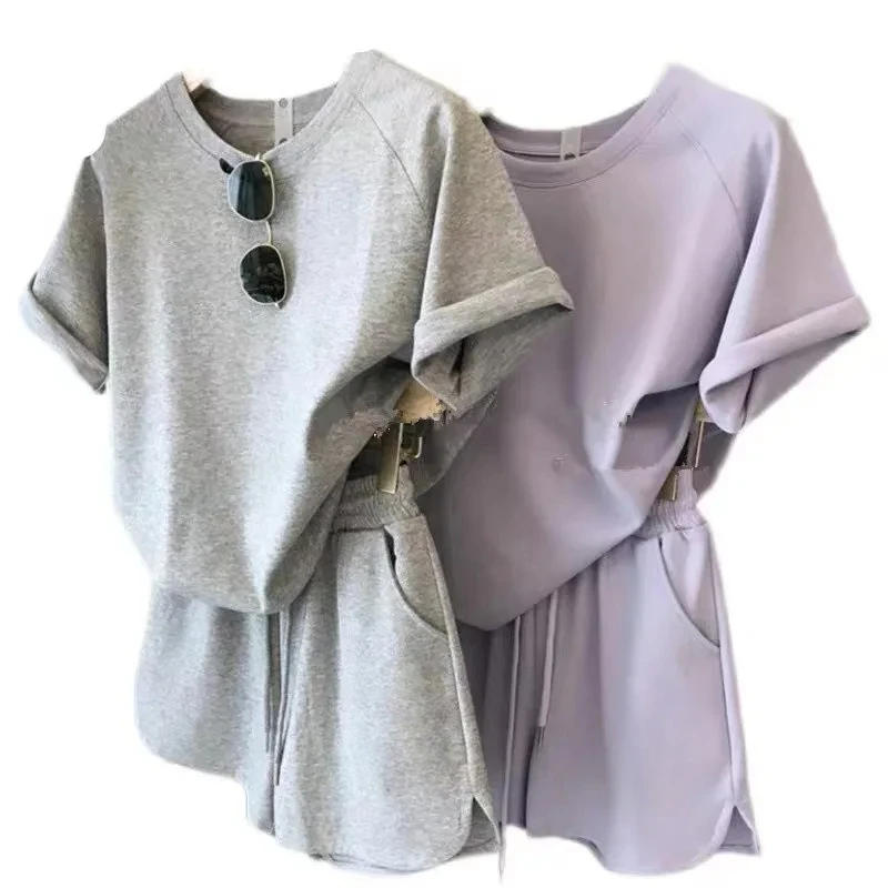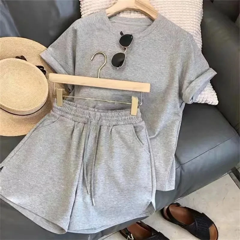 2 Piece Set Women Summer Loose Short Sleeve T-Shirt Casual Shorts Sports .